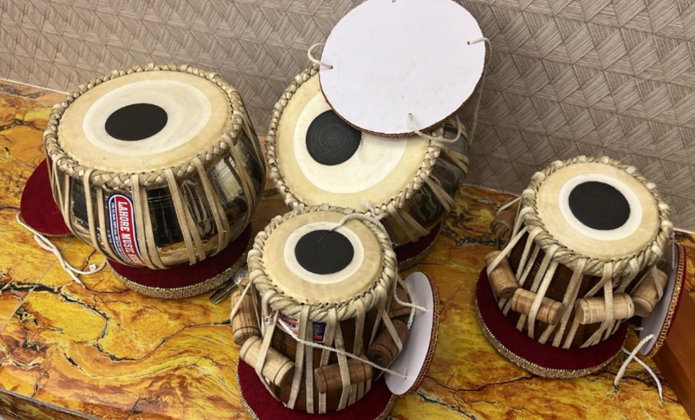 தபேலா செட் என்பது இரண்டு பாரம்பரிய இந்திய தாள வாத்தியங்களை கொண்டுள்ளது: தபேலா (சிறிய டிரம்) மற்றும் பயான் (பெரிய டிரம்). சிக்கலான லயங்கள் மற்றும் ஒலி பரவலுக்காக பிரபலமாக உள்ள தபேலா, பாரம்பரிய இசை, பக்தி பாடல்கள் மற்றும் கலாச்சார நிகழ்வுகளில் பரவலாக பயன்படுத்தப்படுகிறது. இந்த செட் துல்லியத்தையும் ஒற்றுமையையும் குறிக்கிறது, ஆன்மிக மற்றும் கலை அனுபவங்களை செறிவூட்டும் மயக்கமான தாளங்களை உருவாக்குகிறது.