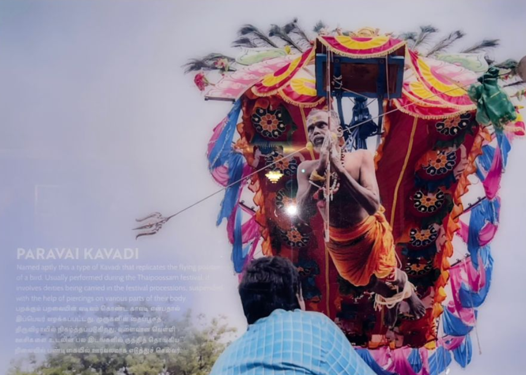 Named aptly this a type of kavadi that replicates the flying position of a bird.Usually performed during the Thaipoosam festival, it involves deities being carried in the festival processions, suspended with the help of piercings on various parts of the body.