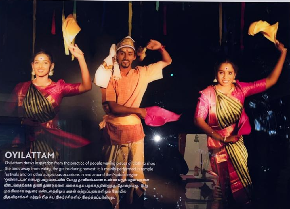 ஓயிலாட்டம் என்பது அறுவடை காலத்தில் பறவைகள் தானியங்களை தின்றுவிடாமல் தடுக்க மக்கள் துணிகளை அசைக்கும் பழக்கவழக்கத்திலிருந்து பிரேரணை பெற்றது. இது முக்கியமாக கோவில் திருவிழாக்களிலும் மற்ற சுப நிகழ்வுகளிலும், குறிப்பாக மதுரை பகுதியின் சுற்றுவட்டாரங்களில், நடனம் ஆடப்படுகிறது.